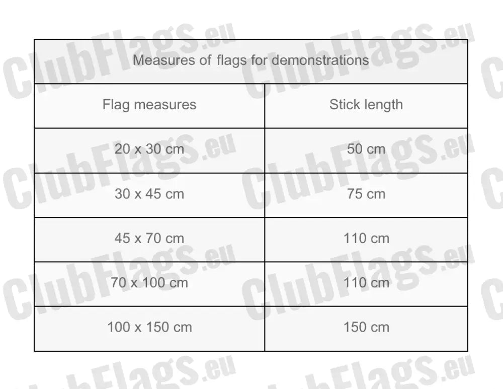 - This club flag is made of 115 g/m² polyester fabric. They have a side sheath into which the stick of wood is inserted.